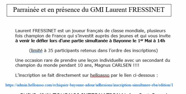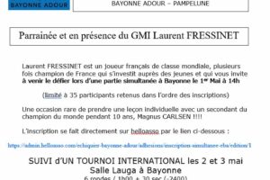 Ci-dessous le message adressé par Sébastien Mazé (GMI) et Thibault Fantinel (MI) ****************************************** Chères joueuses et chers joueurs, Le club de Caïssa Bordeaux a le plaisir